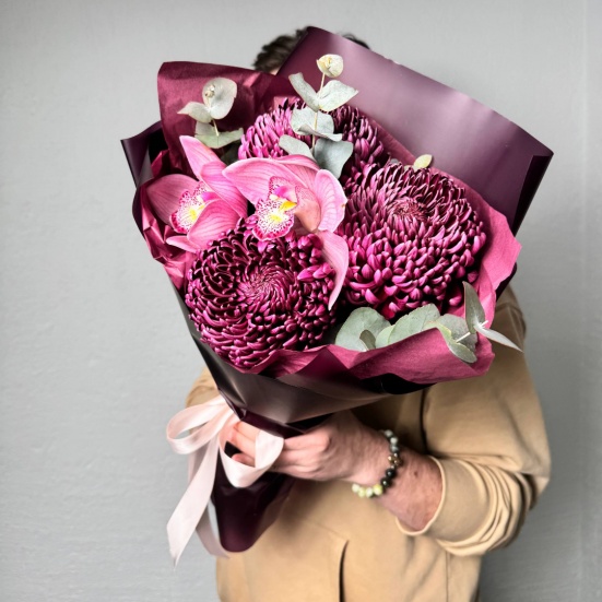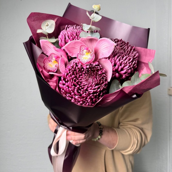 Букет из хризантем Бигуди и Орхидей в Иваново